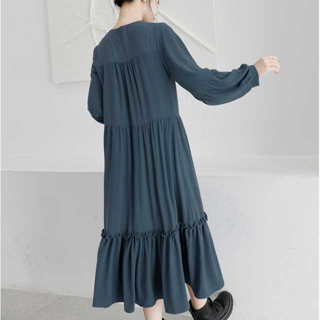《入荷待ち》全3色 ワンピース ロングワンピース フレアワンピース マキシワンピース リボン Aライン ワンピ ロング リボン マキシ フレア 長袖 ウエストマーク 大きいサイズ ゆったり