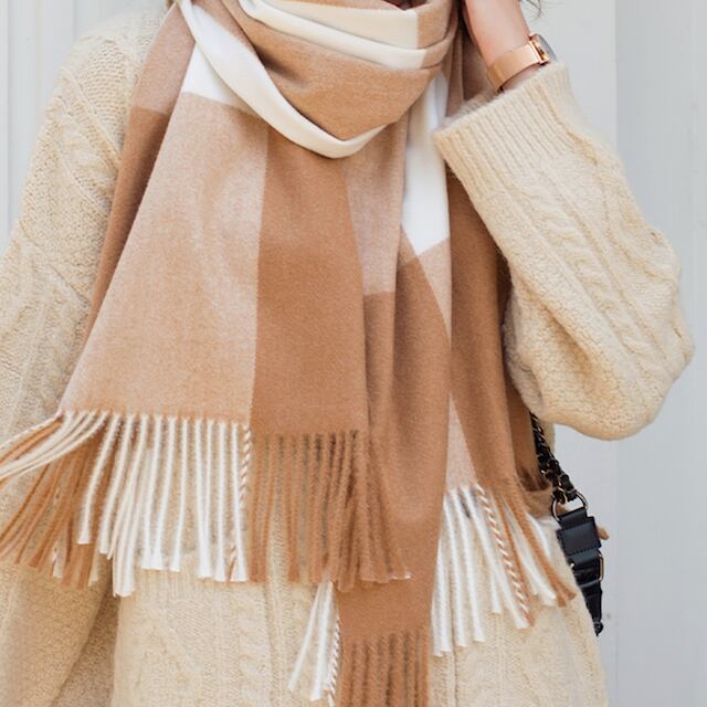 キレイめにもカジュアルにも使えるチェックのマフラーです。