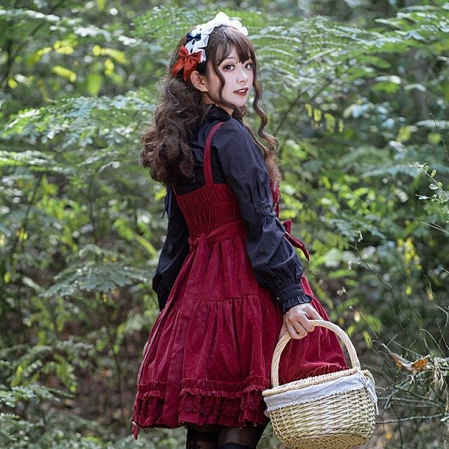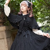 おとぎの国のヒロインのような愛らしい甘ロリワンピース&ケープのセットアップ。
