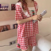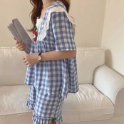 カラフルなギンガムチェック柄が元気いっぱいな印象を与えるルームウェア。
