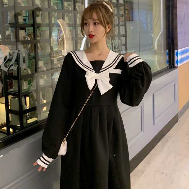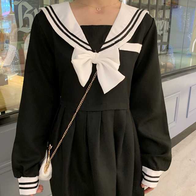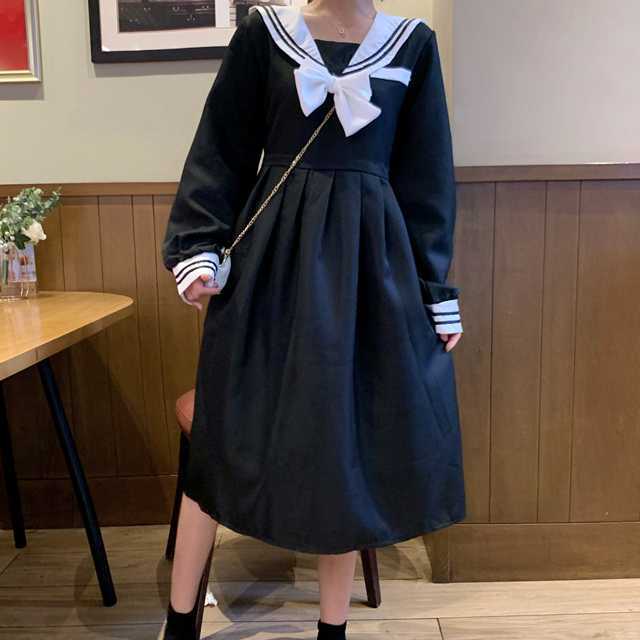 《入荷待ち》セーラー風ワンピース ワンピース レディース 長袖 セーラー服 ショートワンピース ショート丈 フレアワンピース 大人かわいい 着痩せ 痩せ見え 大きめサイズ 夢かわ
