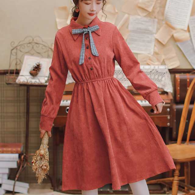 《入荷待ち》全5色 ワンピース レトロワンピース クラシカルワンピ レディース 秋冬ワンピース ワンピ 可愛い 無地 オシャレ ワンピース クラシカル ミディ丈 長袖 カワイイ 通勤 通学 夢かわ