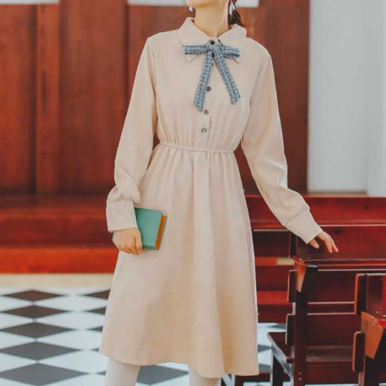 ちょっぴりレトロで優しい雰囲気を醸し出す長袖ワンピース♪