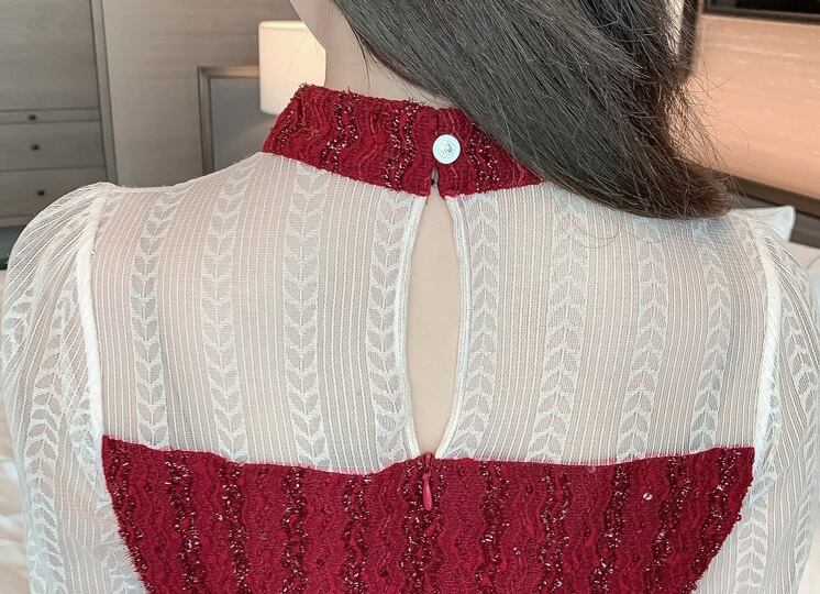デコルテから袖はシースルー生地になので、軽やかで涼しげな印象に。
