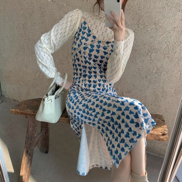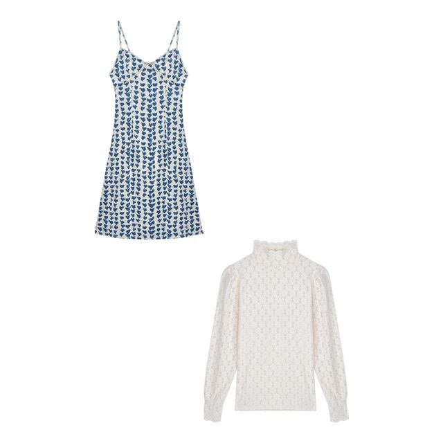 ハイネックのレーストップスとロングワンピースのセットアップ♪
