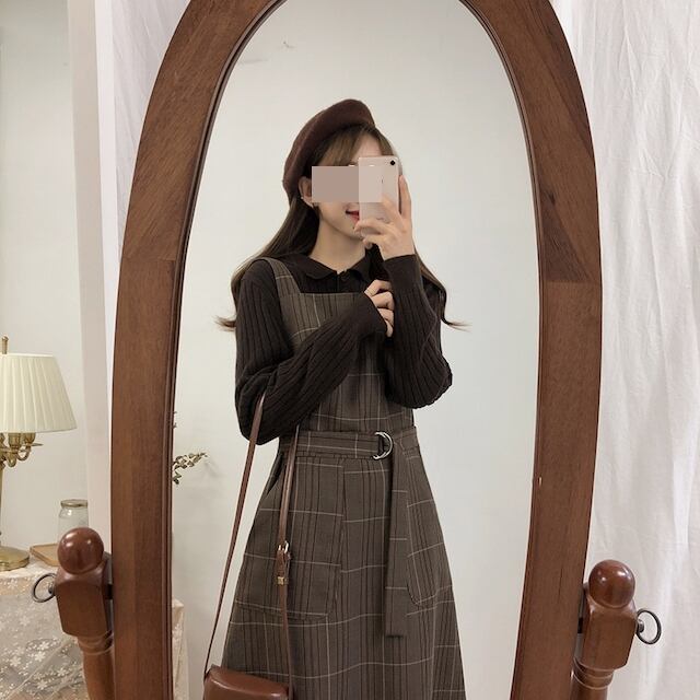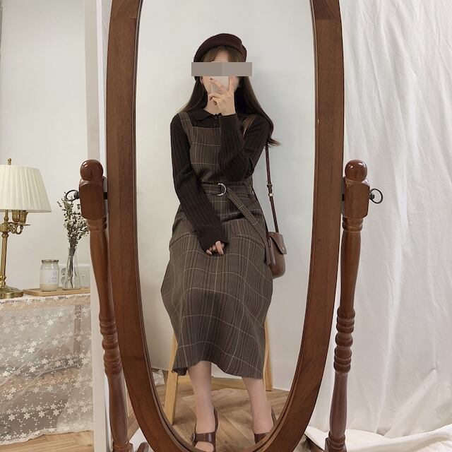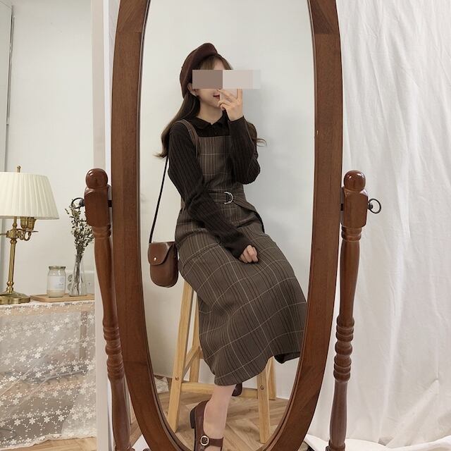 レディース ジャンパースカート ワンピース チェック Aライン シック ストラップドレス ロング丈 ガーリー 大人可愛い おじかわ