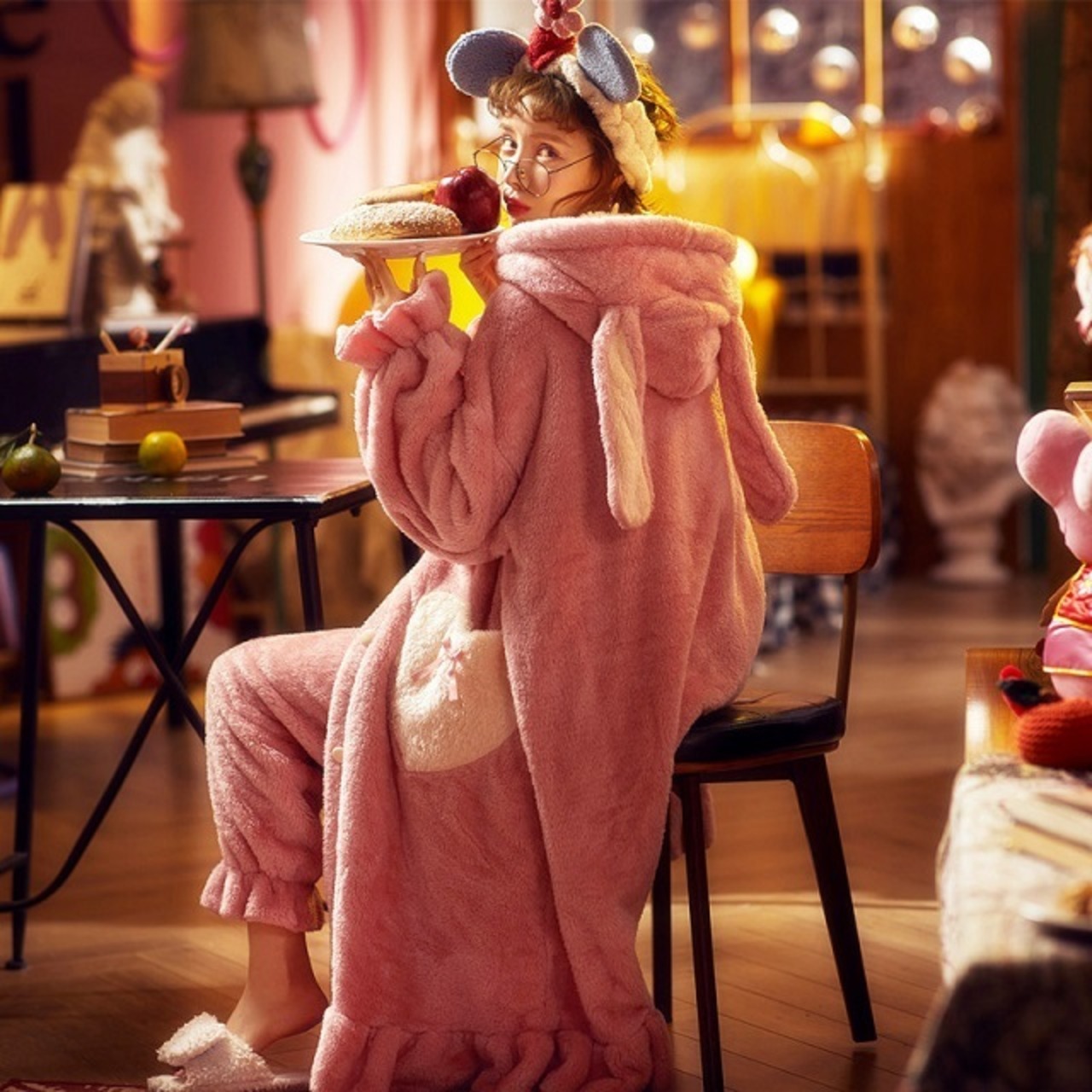 全5色 ルームウェア レディース もこもこ 上下セット 大きいサイズ うさ耳 パンツ ふわもこ 可愛い キュート ポケット 長袖 部屋着 パジャマ 耳 パーカー Roomwear