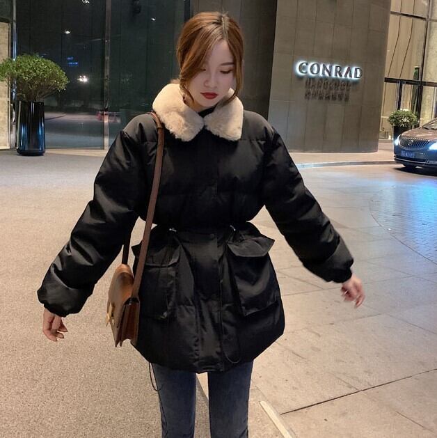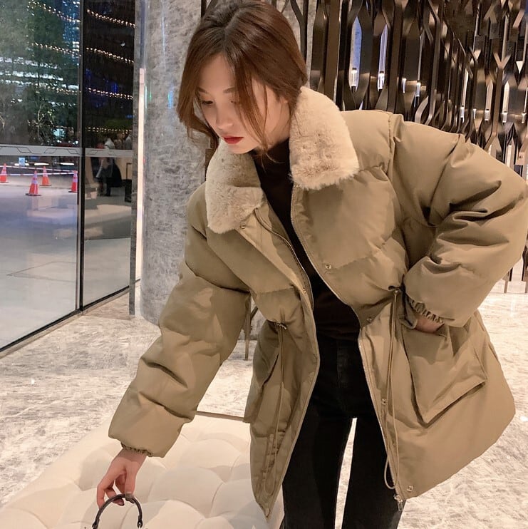 《再入荷》大きいサイズ 小さいサイズ 全3色 レディース アウター ダウン 中綿 ジャケット コート ファー ウエストマーク ハイウエスト ショート丈 ふわふわ 厚手 無地 防寒 ゆったり あったか シンプル きれいめ カジュアル 大人可愛い 冬 かわ大 かわ小
