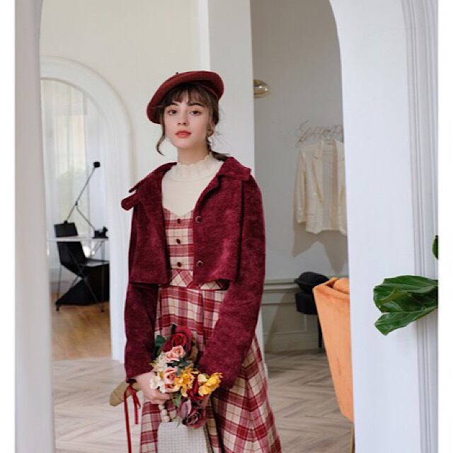《入荷待ち》レディース 長袖 アウター ショート丈 秋冬 ボルドーカラー シック 大人可愛い