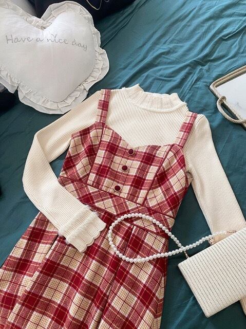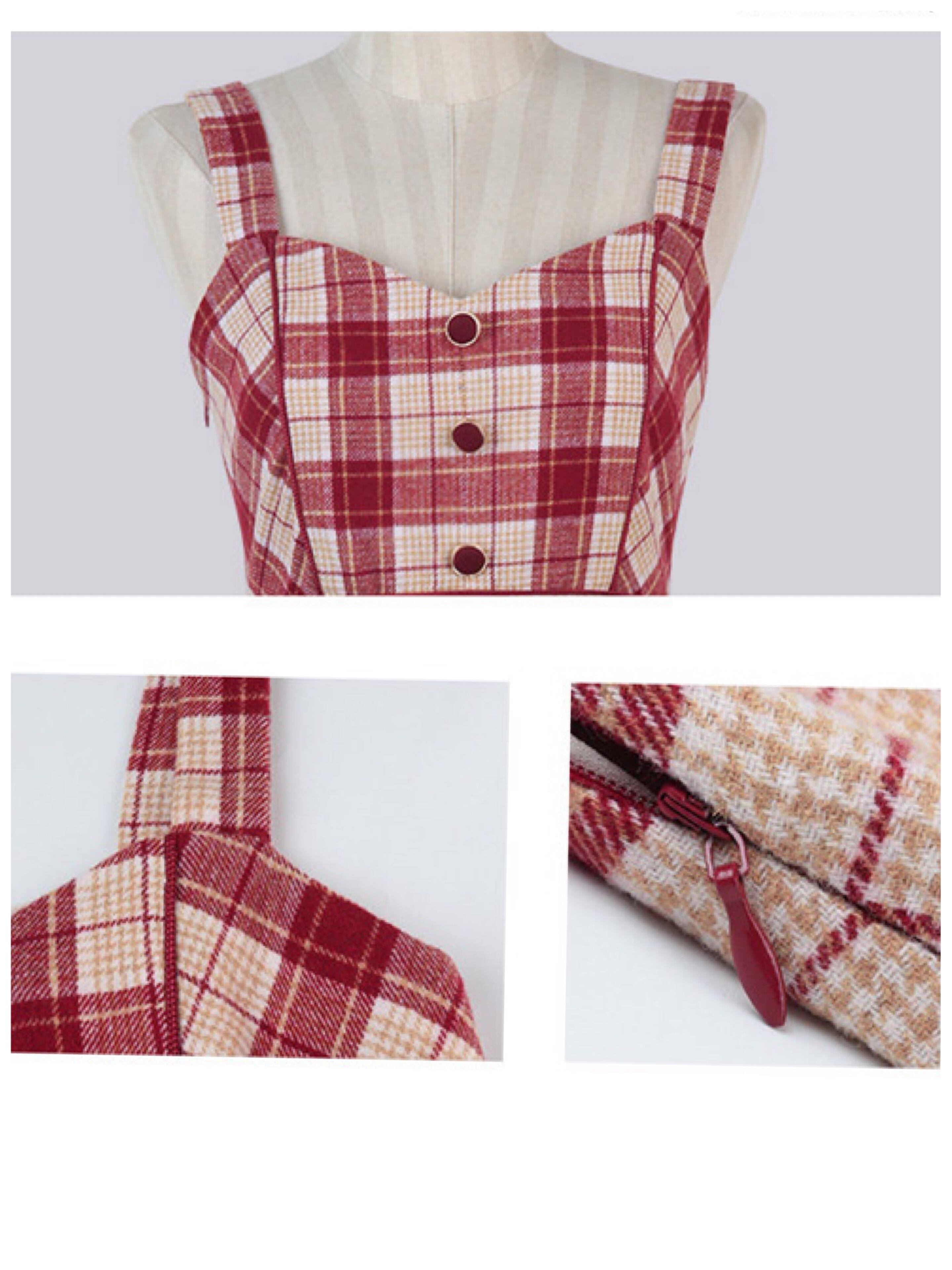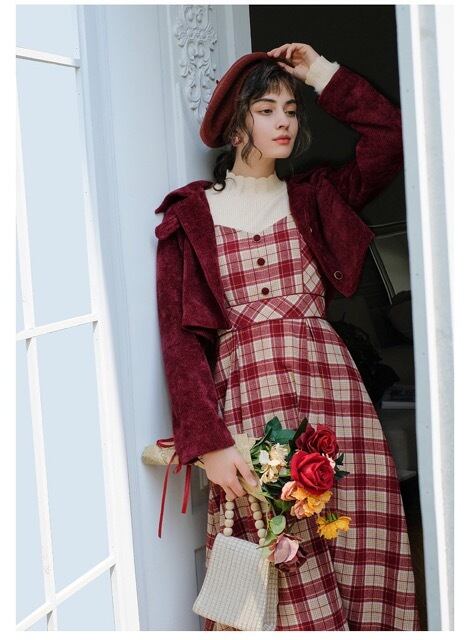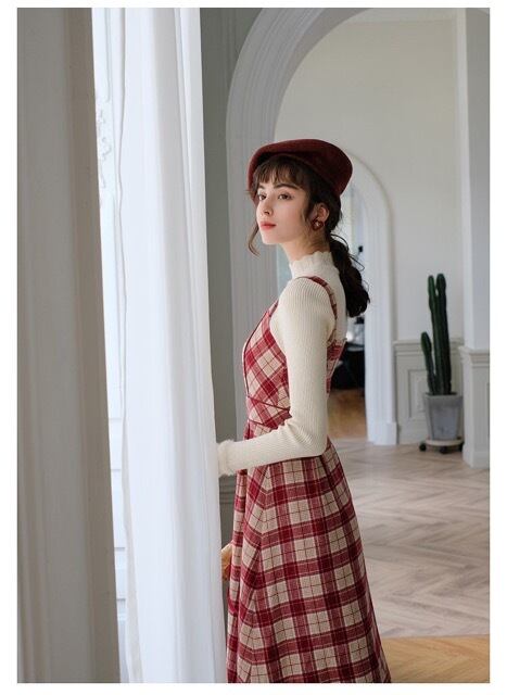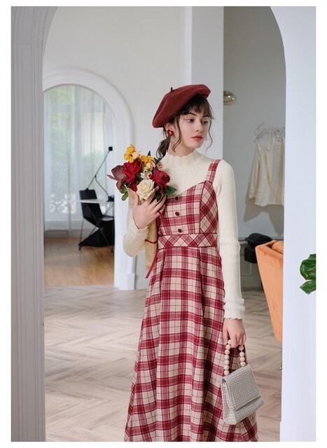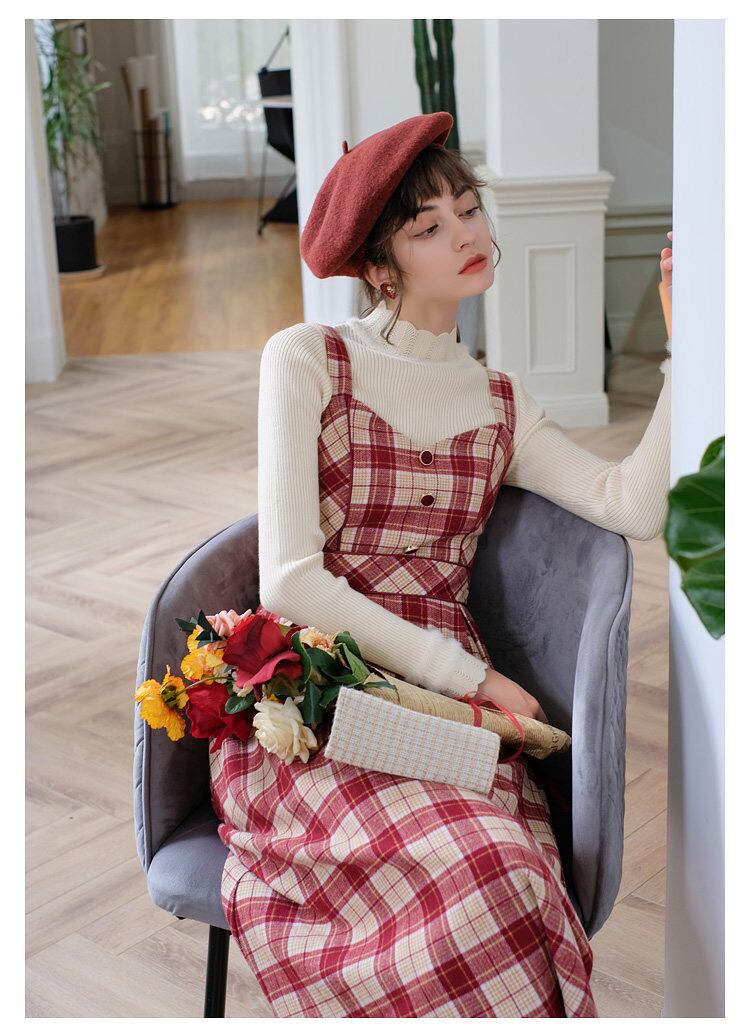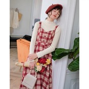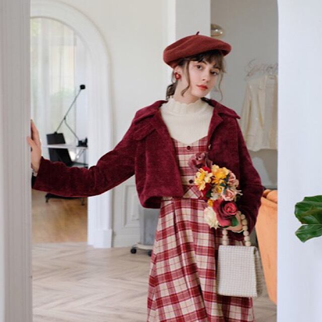 《入荷待ち》ロマかわ ワンピース レディース Hライン チェック ボルドーカラー 大人可愛い ミモレ丈 秋冬