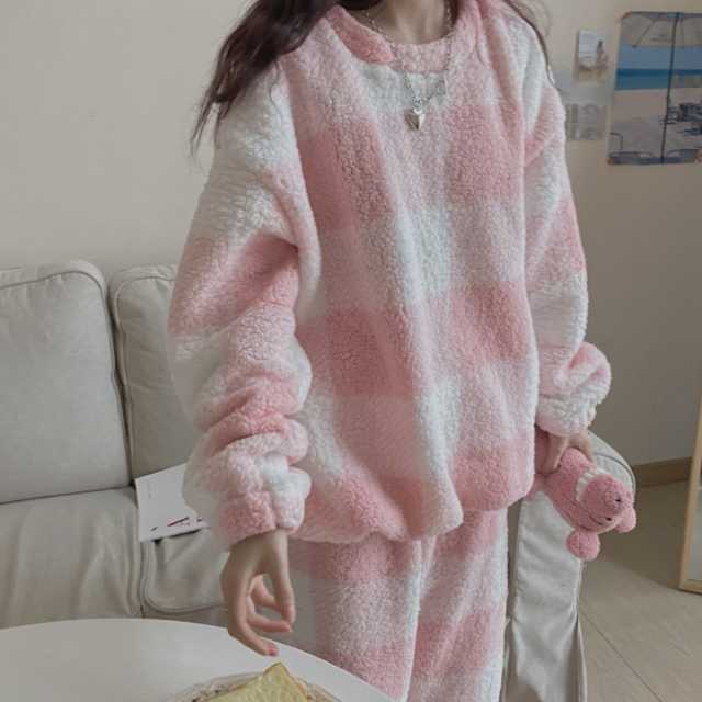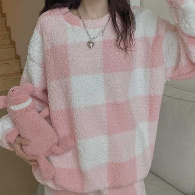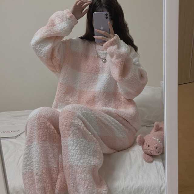 《入荷待ち》 ルームウェア レディース もこもこ 上下セット 大きいサイズ パンツ ふわもこ 可愛い キュート 長袖 部屋着 パジャマ Roomwear