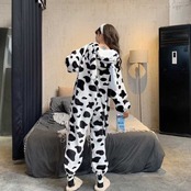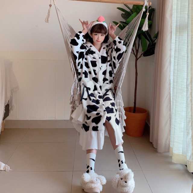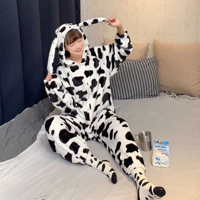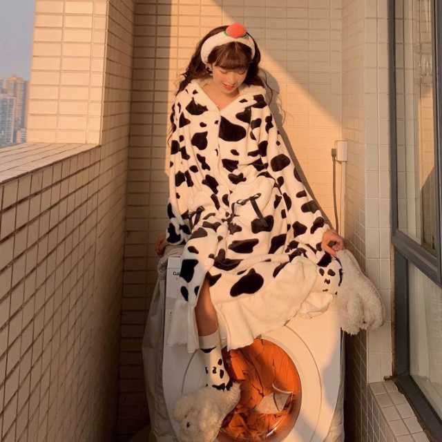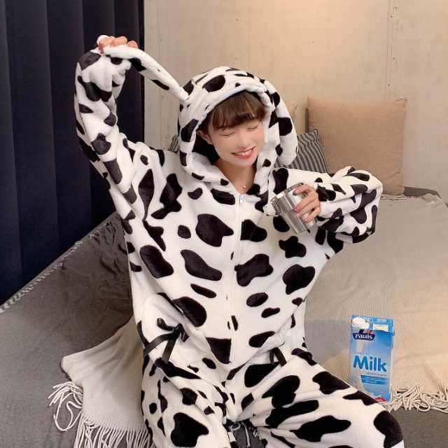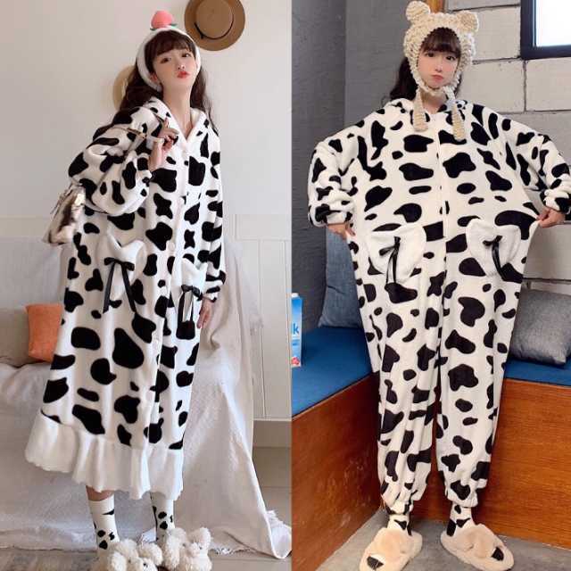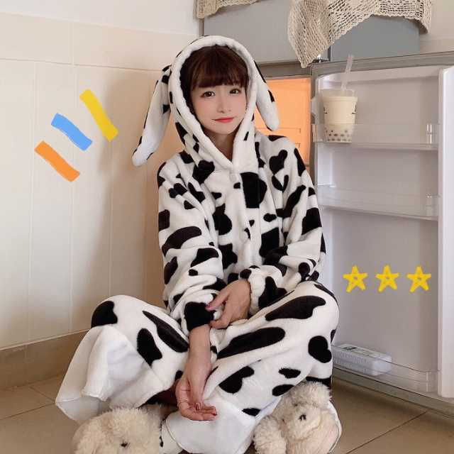 《入荷待ち》全2種 ルームウェア レディース もこもこ ローブタイプ パンツタイプ モーモー 牛模様 牛柄 大きいサイズ ふわもこ 可愛い キュート フード ポケット 長袖 部屋着 パジャマ 干支 コスプレ Roomwear