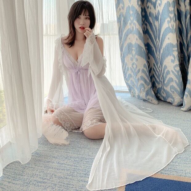 《入荷待ち》 レディース レース ロマかわ ナイトガウン セクシー トランペットスリーブ エレガント 透け感 Roomwear