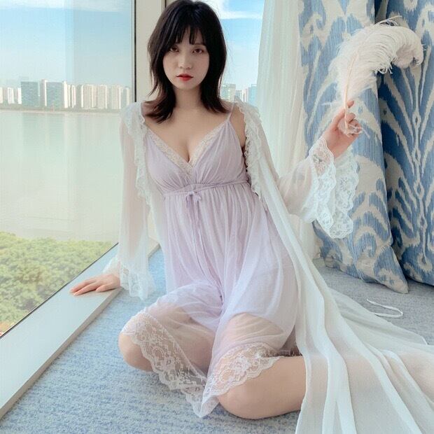 レースをふんだんにあしらったロマかわいいナイトガウン。