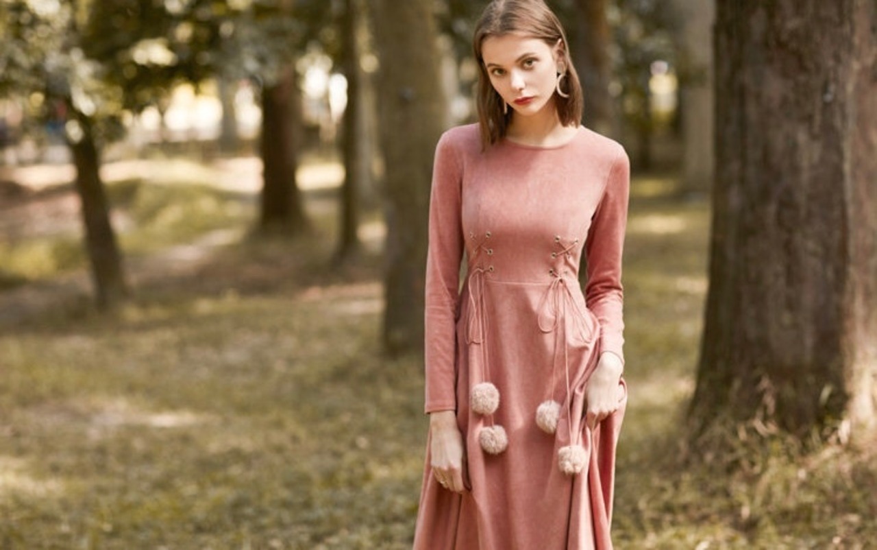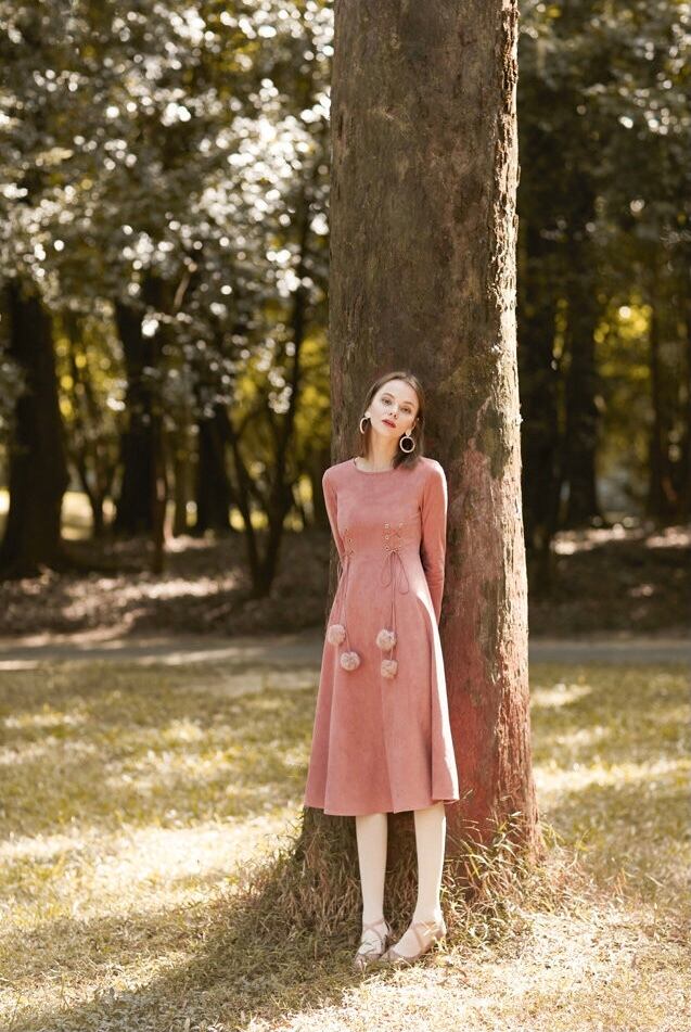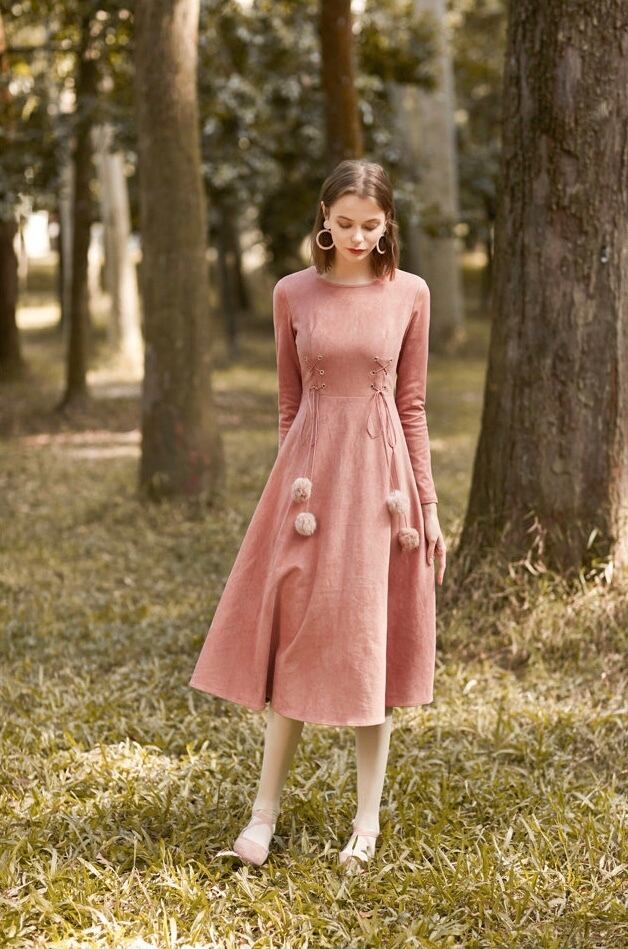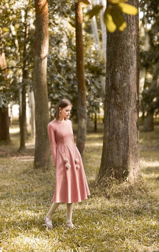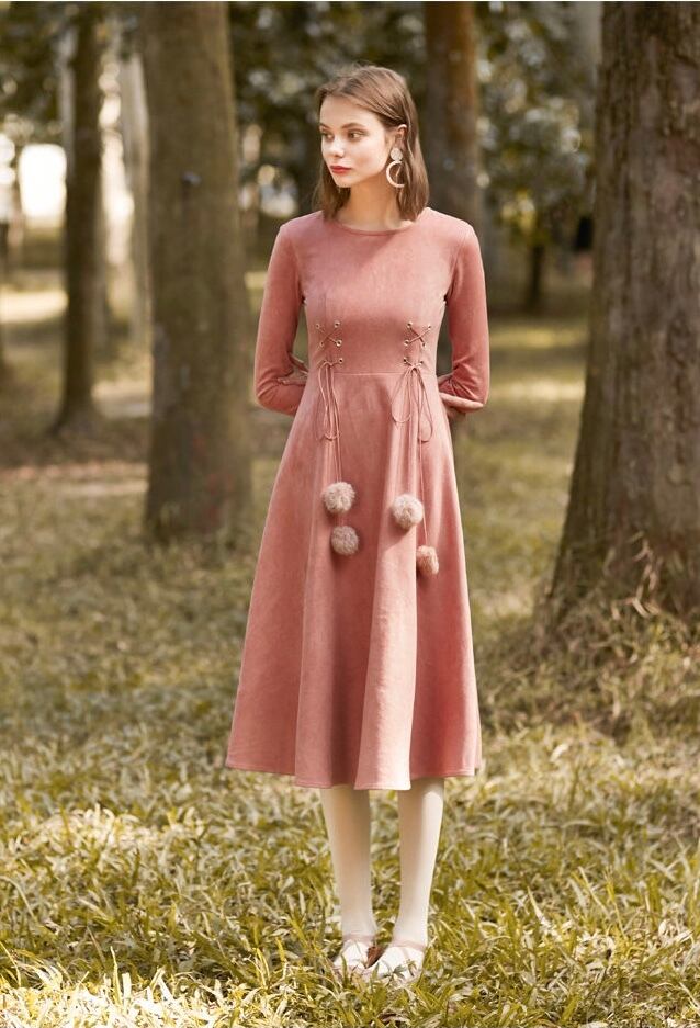 ウエストについたリボンタイとポンポンがノスタルジック。