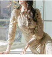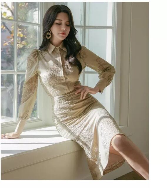 大きいサイズ レディース セットアップ ツーピース 大人キレイ レース 上品 おしゃれ 透け感 膝丈 マーメイドスカート スリムシャツ レース カジュドレス