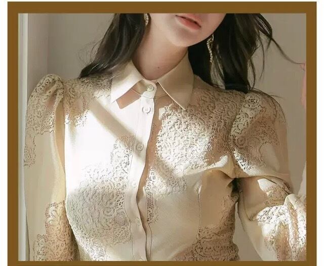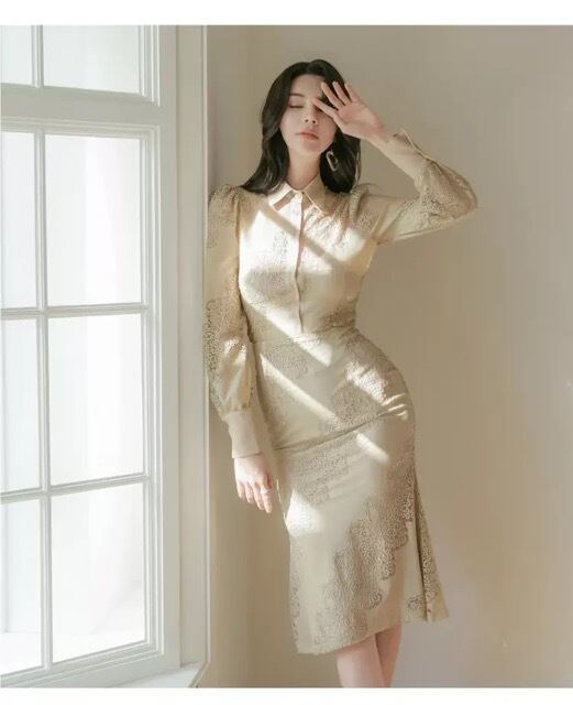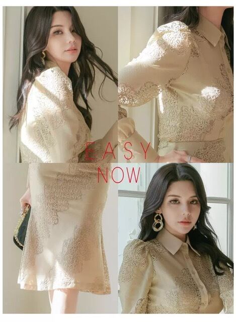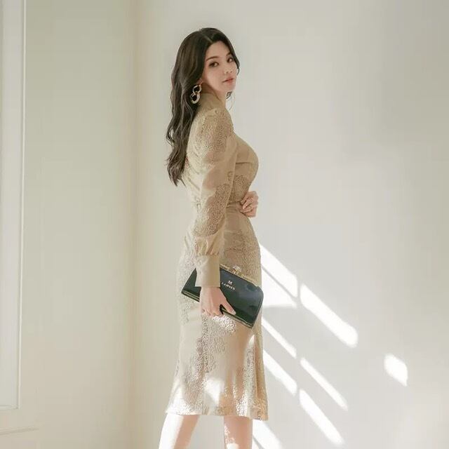 ヌーディーカラーとレースの組み合わせが品のある女性を演出。