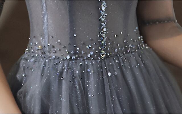 《入荷待ち》大きいサイズ 小さいサイズ レディース パーティー ゴージャス ビジュー バックリボン Aライン 透け感 エレガント ロング丈 レトロ モダン セクシー カジュドレ かわ大 かわ小