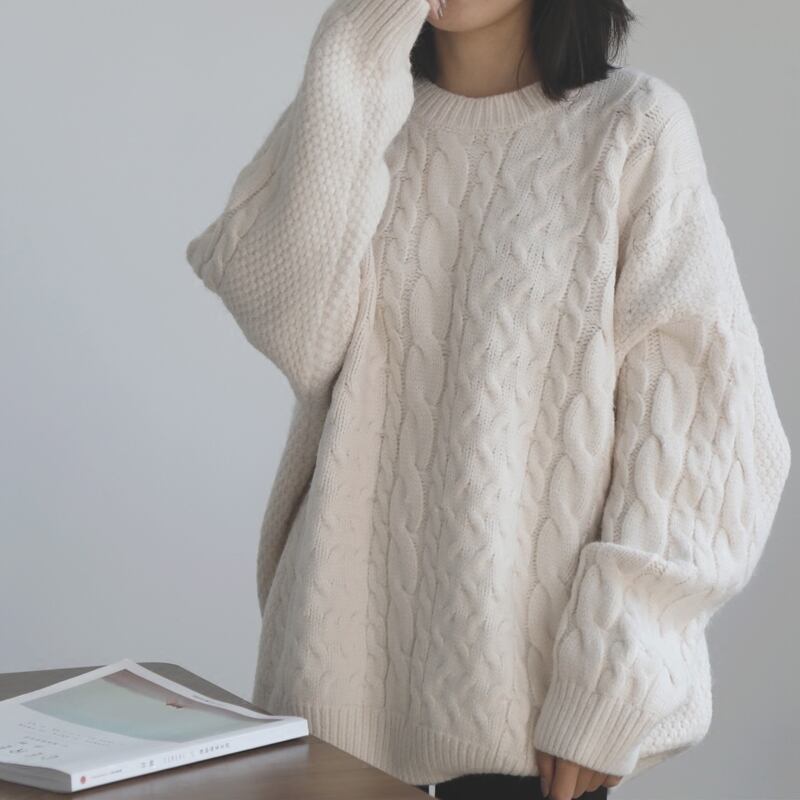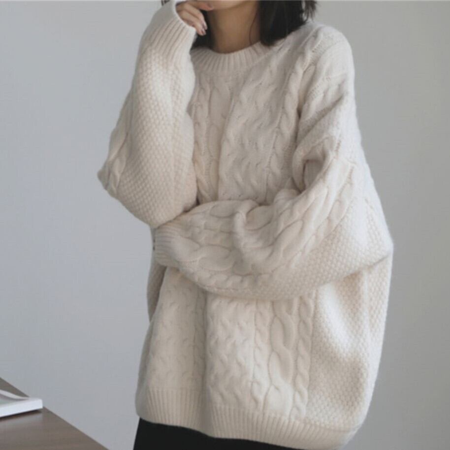 《入荷待ち》全4色 大きいサイズ 小さいサイズ レディース トップス ケーブル ニット セーター クルーネック オーバーサイズ ゆったり きれいめ シンプル 定番 大人カジュアル ナチュラル 秋 冬 トレ定 キレナチュ