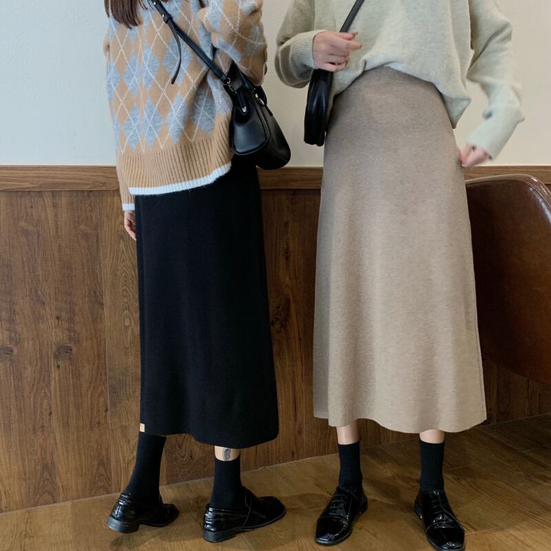《入荷待ち》全2色 レディース ニット フレア スカート Aライン ミドル丈 ミモレ丈 ハイウエスト ウエストゴム 楽ちん シンプル レトロ フェミニン ナチュラル 秋 冬 キレナチュ