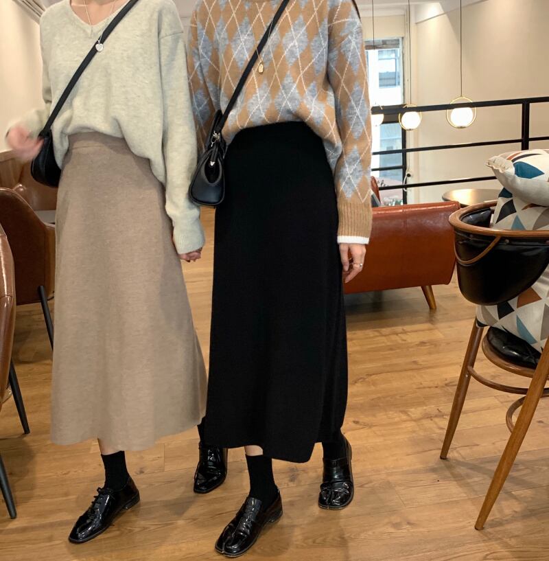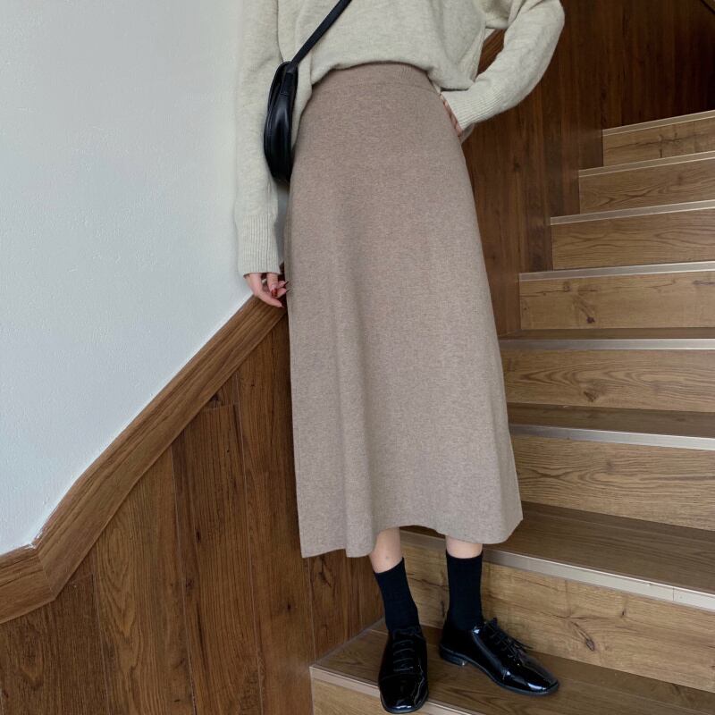 aラインシルエットがフェミニンなニットスカート。