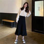 ハイウエストで脚長効果があり、aラインシルエットでスタイルアップにも!