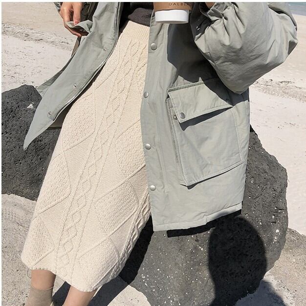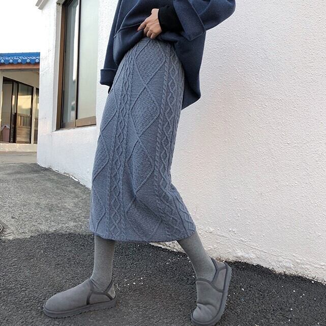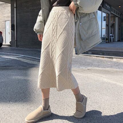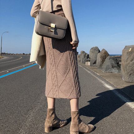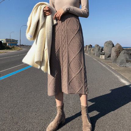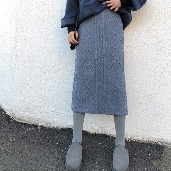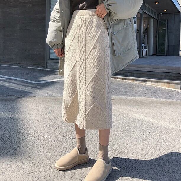 《入荷待ち》全4色 レディース ボトムス ニット スカート ケーブル ミドル丈 ミモレ丈 ハイウエスト ウエストゴム フェミニン きれいめ シンプル ナチュラル 秋 冬 キレナチュ