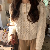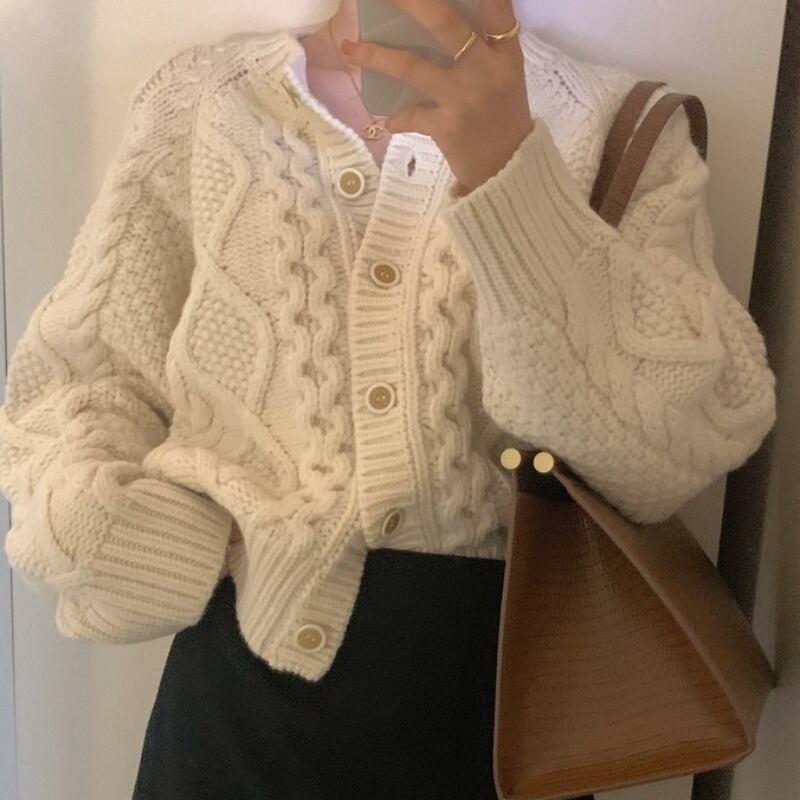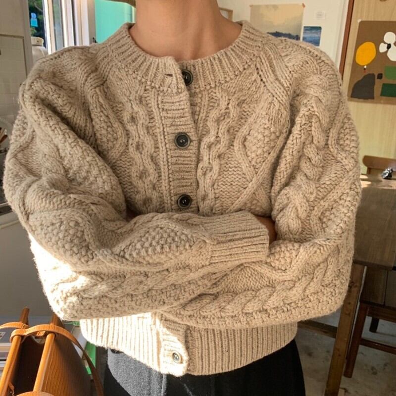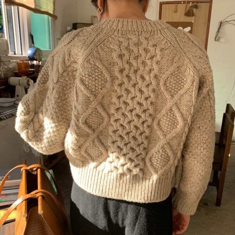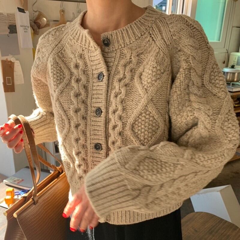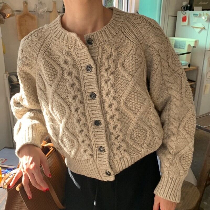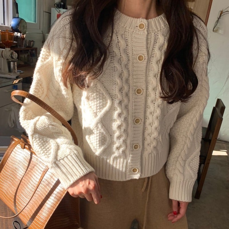 ざっくりケーブル編みがおしゃれなカーディガン。
