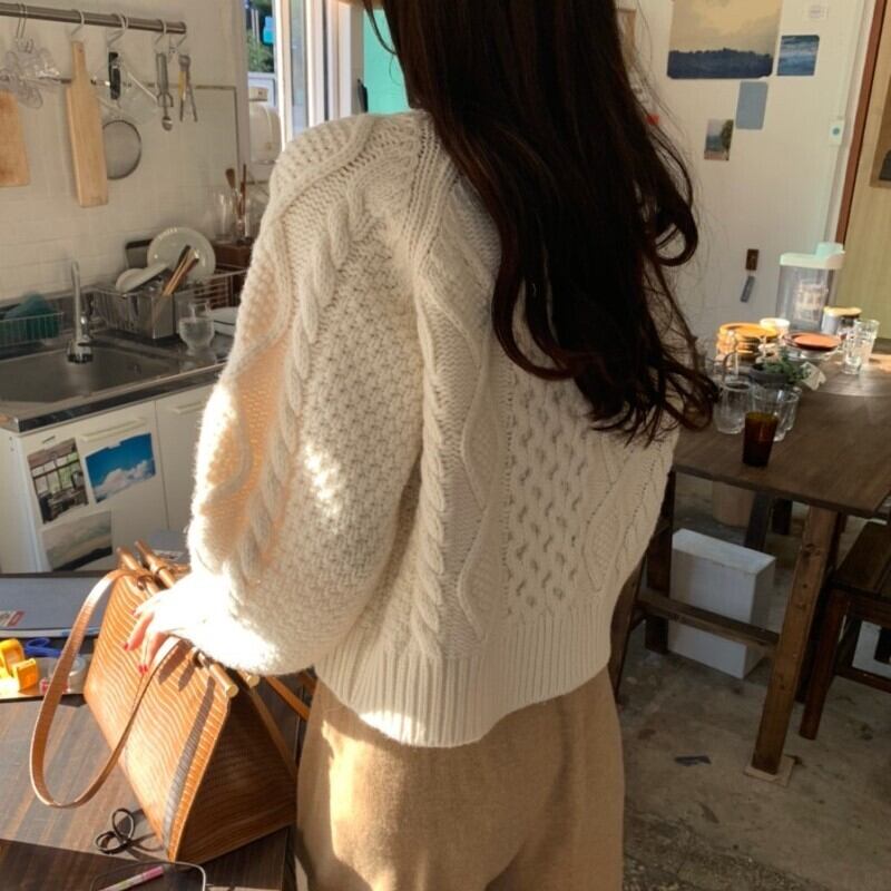 《入荷待ち》 全3色 レディース トップス ニット セーター カーディガン ケーブル ざっくり ショート丈 オーバーサイズ 羽織 長袖 ナチュラル きれいめ フェミニン キレカジ 秋 冬 キレナチュ