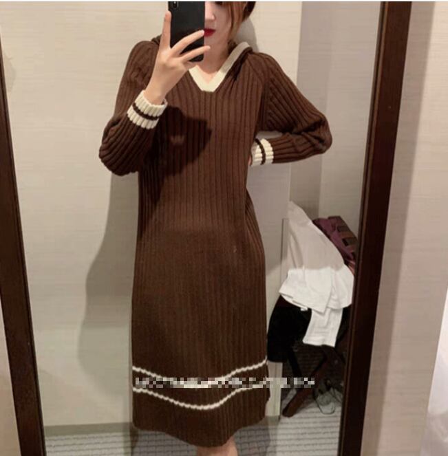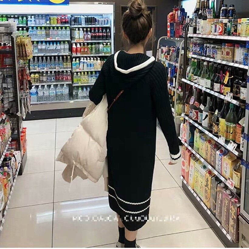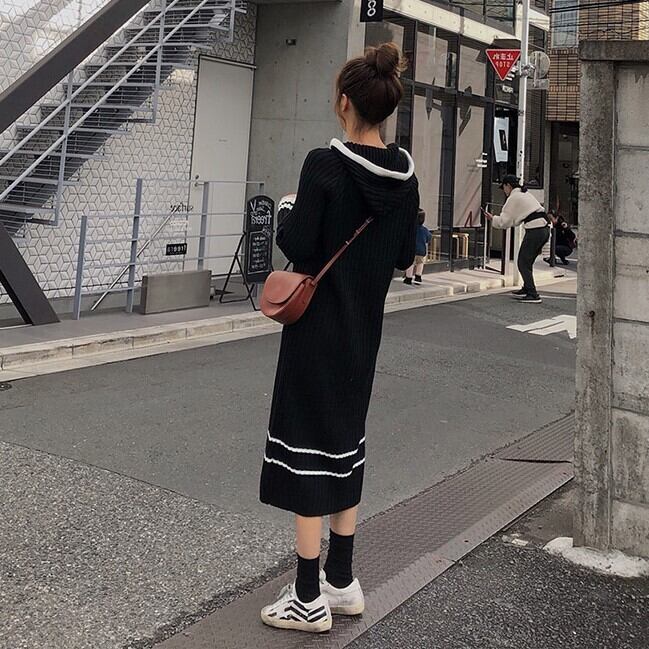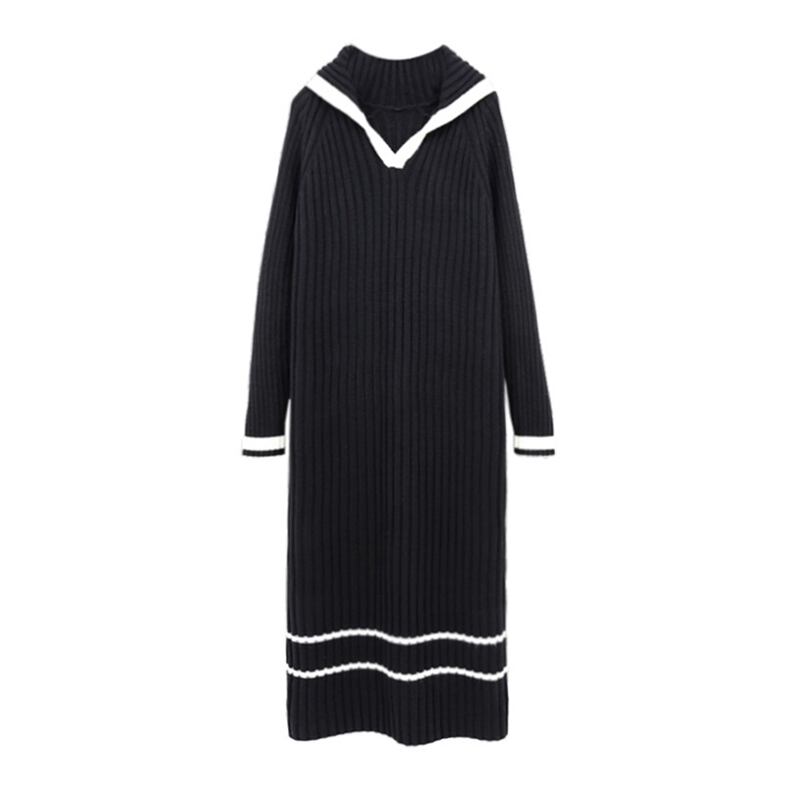 《入荷待ち》全2色 大きいサイズ 小さいサイズ レディース ワンピース チルデン ニット フード付き ミモレ丈 ミドル丈 バイカラー 長袖 ナチュラル カジュアル キレカジ 秋 冬 かわ大 キレナチュ