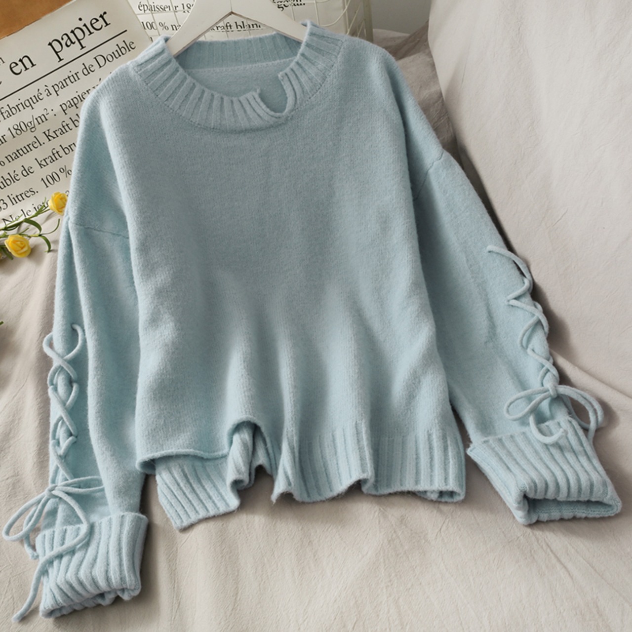 《入荷待ち》全7色 レディース トップス ニット セーター レースアップ キーネック リボン 袖コン フェミニン 大人カジュアル ナチュラル 秋 冬 キレナチュ