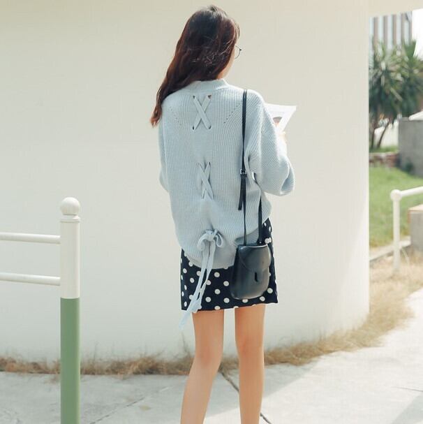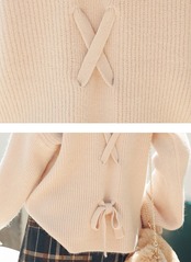 《入荷待ち》全2色 レディース トップス ニット セーター レースアップ ハイネック リボン ベルスリーブ バックシャン ガーリー オーバーサイズ フェミニン 大人カジュアル ナチュラル 秋 冬 キレナチュ