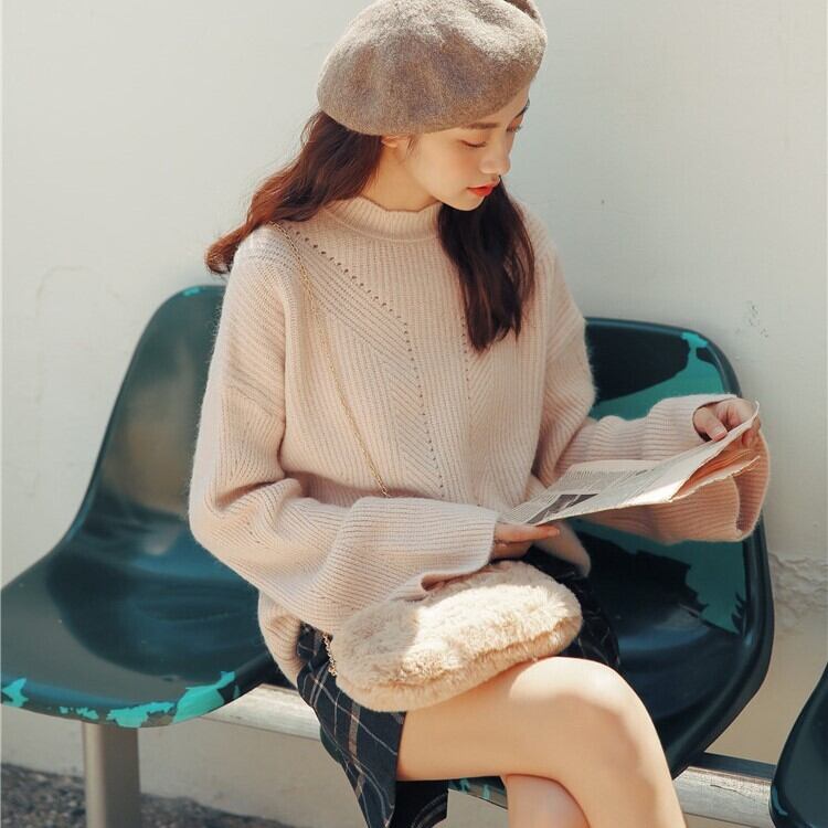 どの角度から見ても可愛さ抜群のハイネックニット。