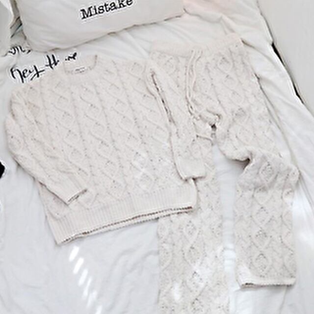 秋冬 ルームウェア ゆったりサイズ ニット ツーピース セットアップ パジャマ おウチ時間 お泊り会 Roomwear