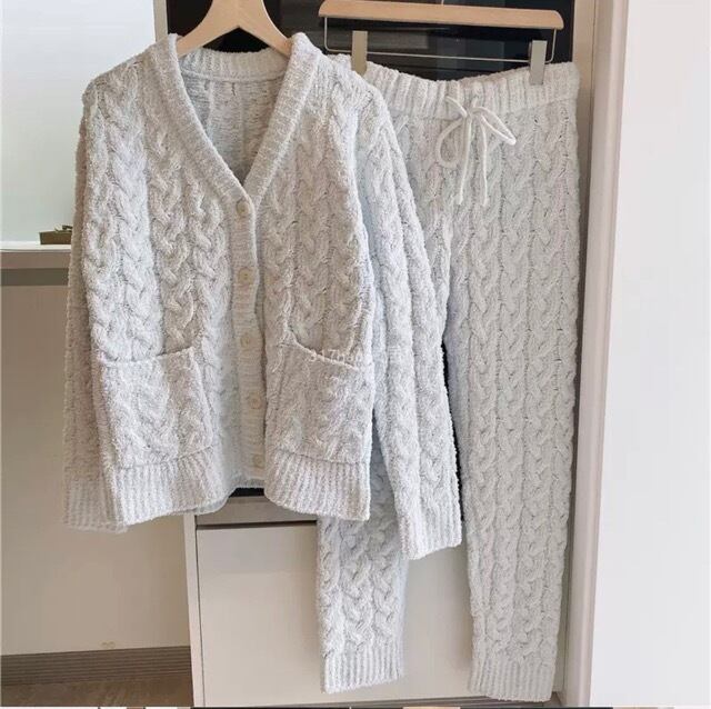 《入荷待ち》 秋冬 長袖 上下セット パジャマ ームウェア ニット パジャマ セットアップ カジュアル デイリー Roomwear