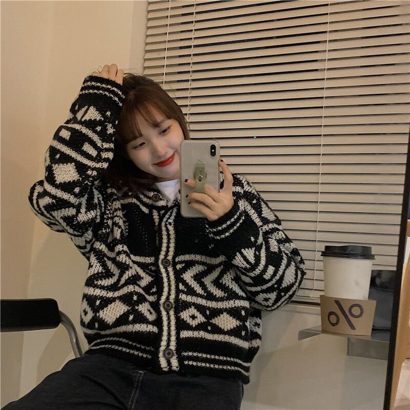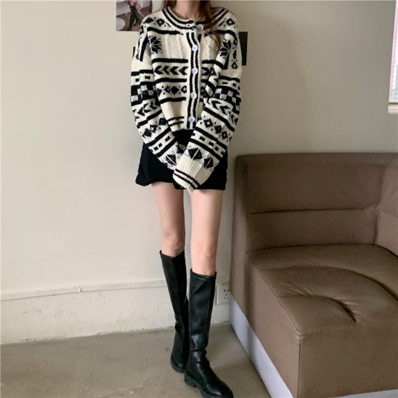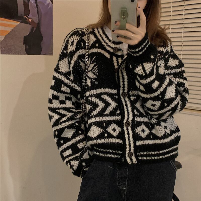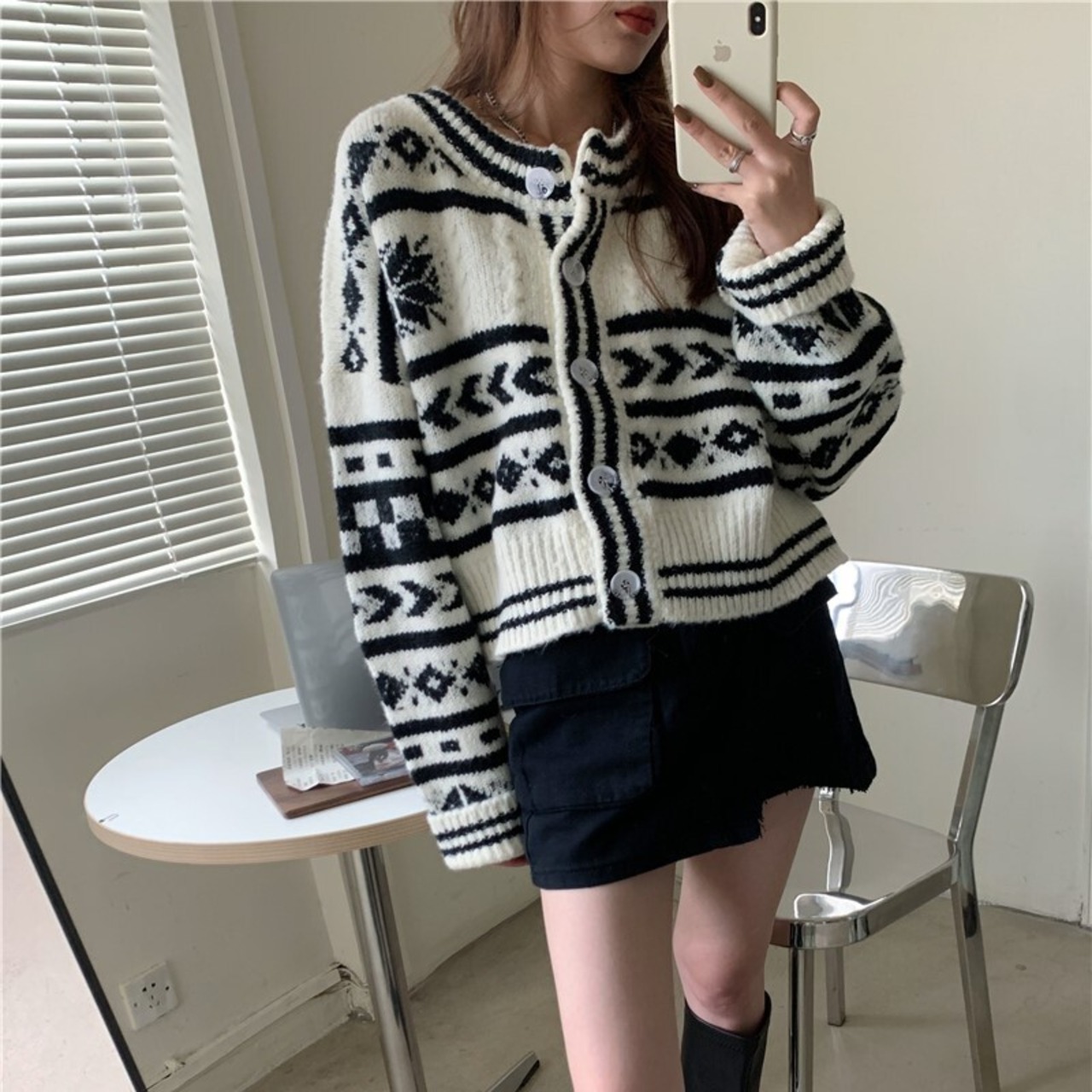 《入荷待ち》 全2色 レディース トップス ニット カーディガン セーター 羽織 ショート丈 ノルディック柄 オーバーサイズ レトロ カジュアル ナチュラル 春 秋 冬 キレナチュ