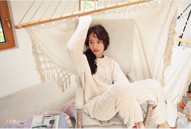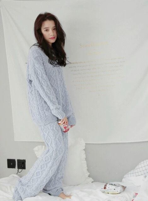 秋冬にピッタリのざっくり編みのニットパジャマ。
