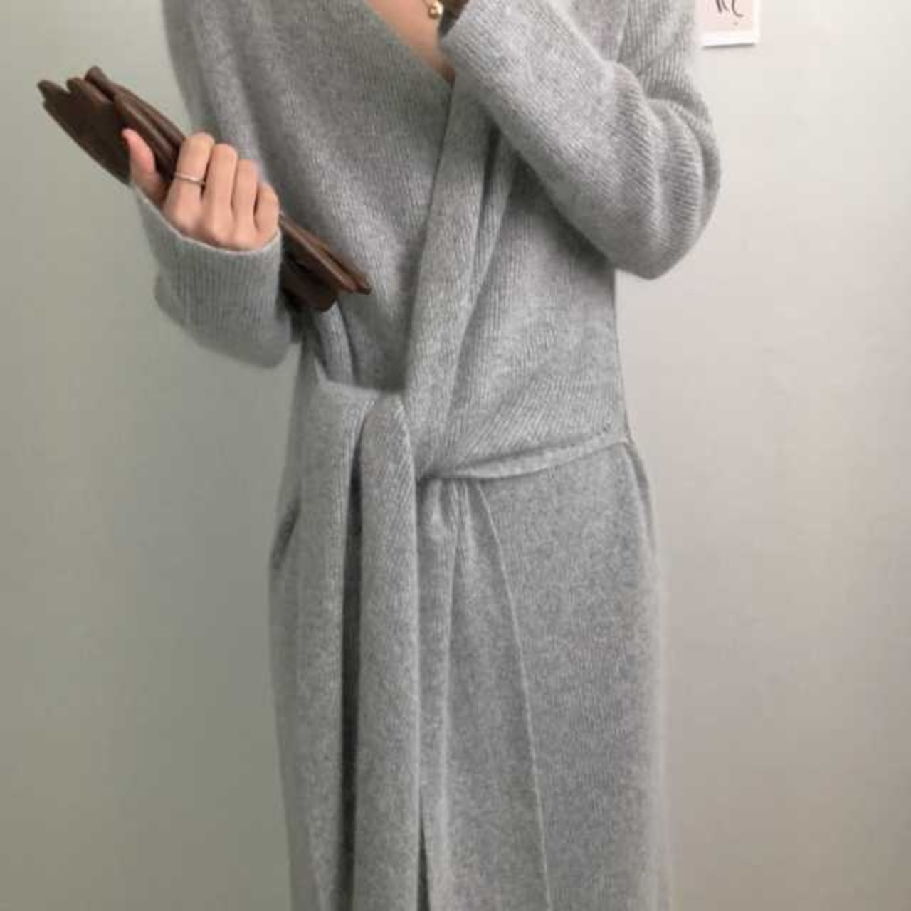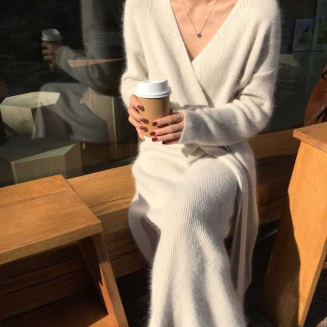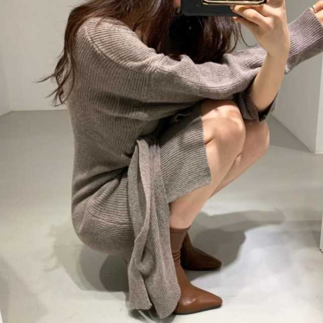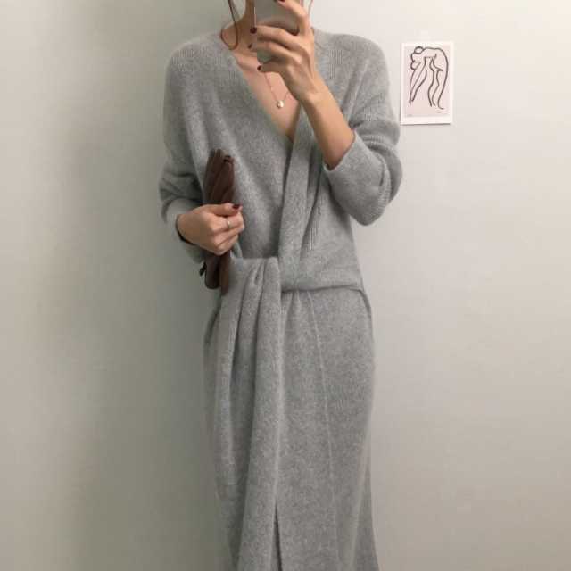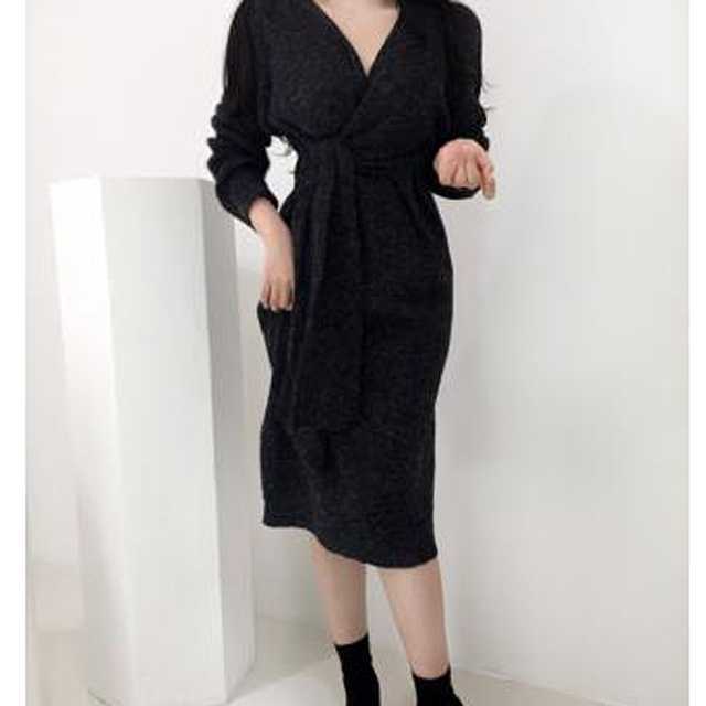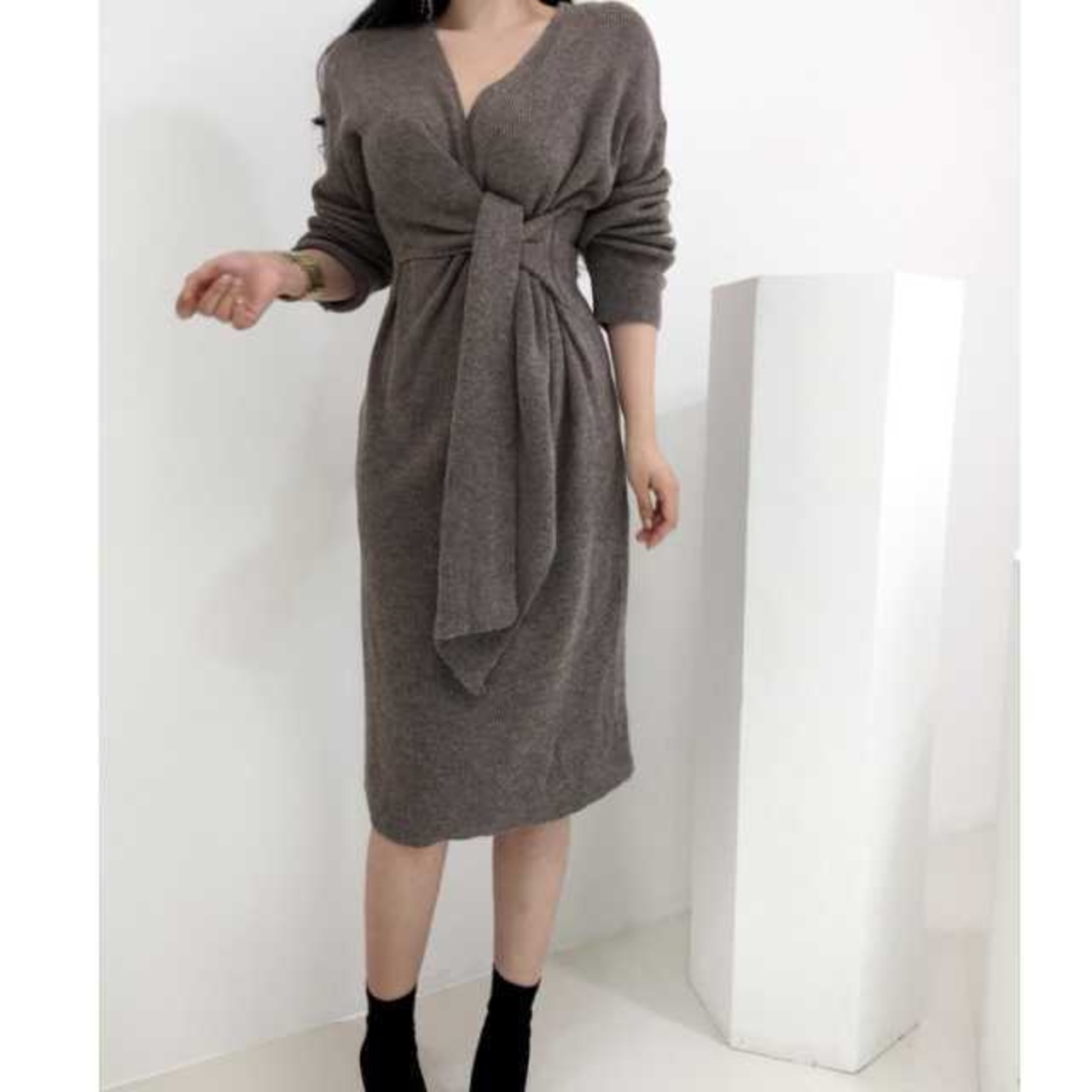 《入荷待ち》 全4色 ワンピース ニットワンピース クラシカルワンピ レディース 秋冬ワンピース Vネック ワンピ フェミニン オシャレ ワンピース クラシカル ミディ丈 長袖 カワイイ 通勤 通学 キレセク