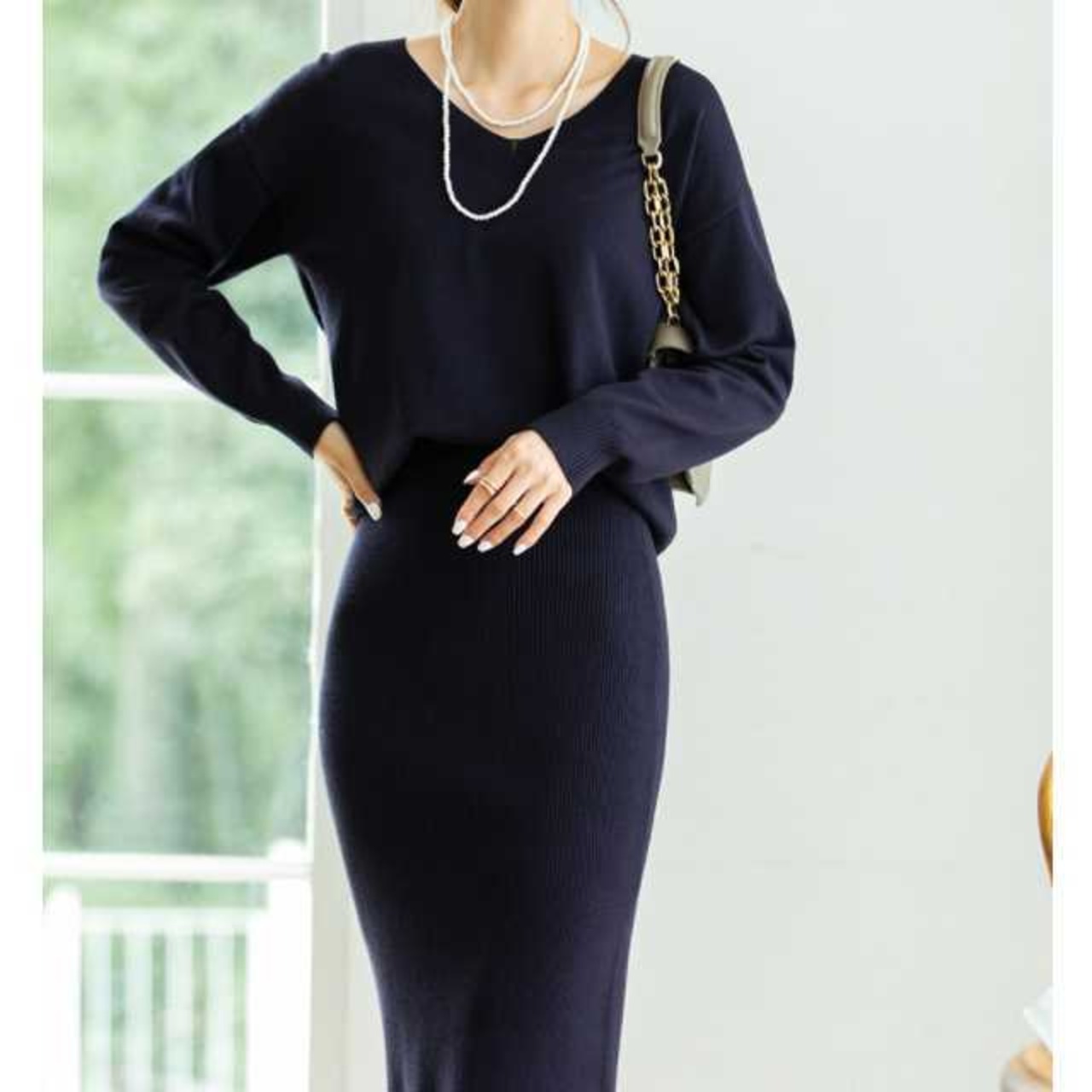 《入荷待ち》全3色 Vネックニット スカートセットアップ セットアップ レディース スカート ニット レディース ニット カジュアル トップス Vネック ニット ミモレ丈 タイトスカート ひざ丈 通勤 キレセク