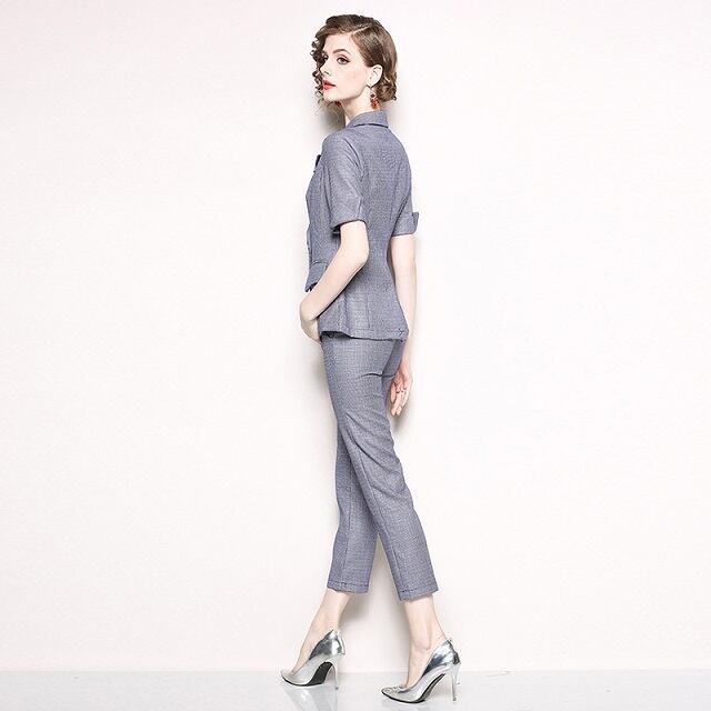 《入荷待ち》セットアップ パンツスタイル パンツセットアップ スーツ セクシー アシンメトリー ジャケット 七分丈 パンツスーツ オフィス 通勤 キレセク