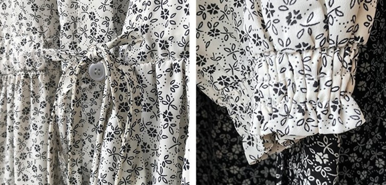 上品な花柄が大人っぽく上品で、フワっとしたシルエットで着痩せ効果もあります。