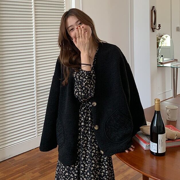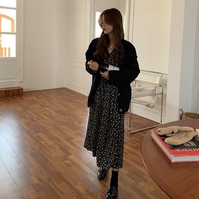 ゆったりしたニットカーディガンと合わせると、こなれコーデの完成!