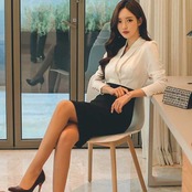 ほっそりしたウエストから広がるタイトスカートで上品さをアピール。