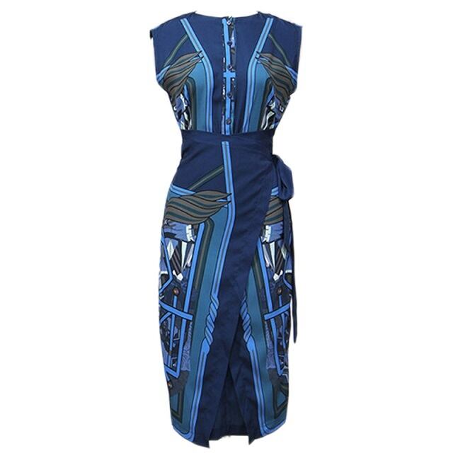 ワンピース ノースリーブ ドレス エスニック レトロ 幾何学 ハイウエスト タイトスカート ウエストリボン ウエストマーク フォーマル エレガント 上品 きれいめ セクシー 大人 春 夏 ひざ丈 キレセク