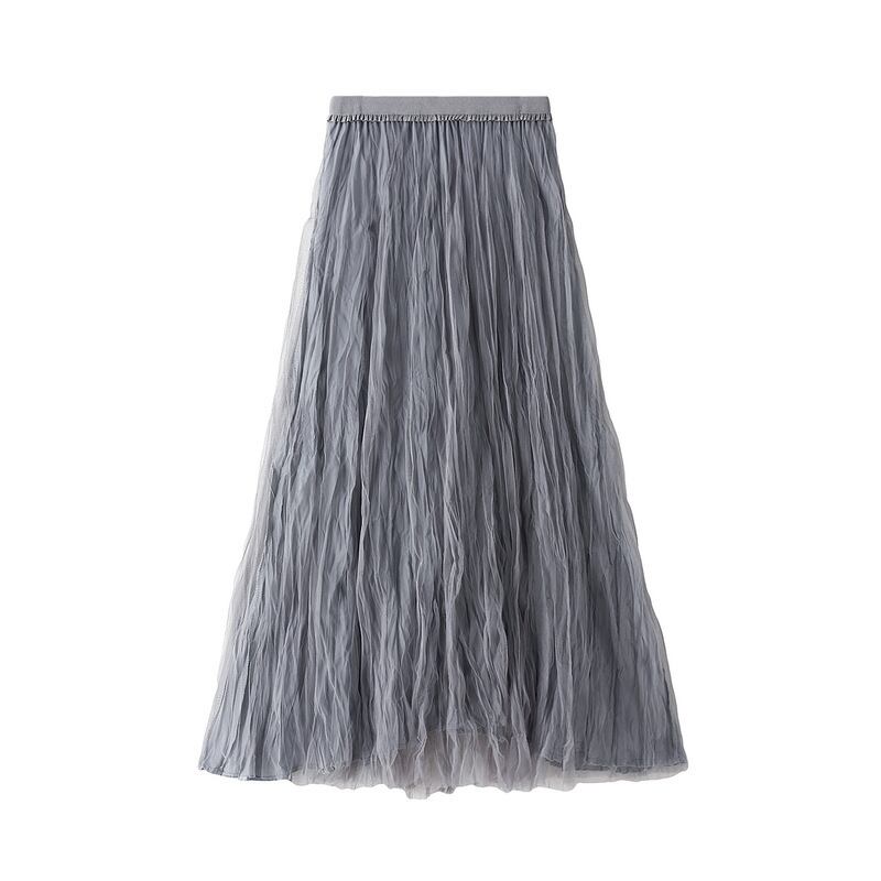 全4色 レディース リバーシブル チュール スカート ロング丈 ミモレ丈 メッシュ しわ加工 ウエストゴム Aライン 無地 ナチュラル シンプル カジュアル 春 秋 キレナチュ