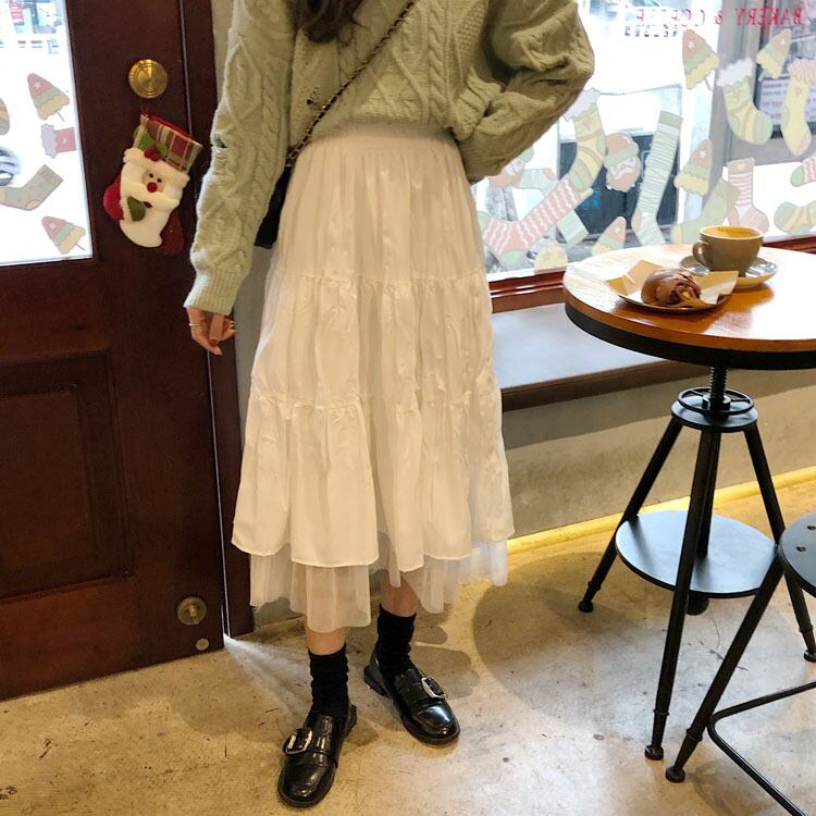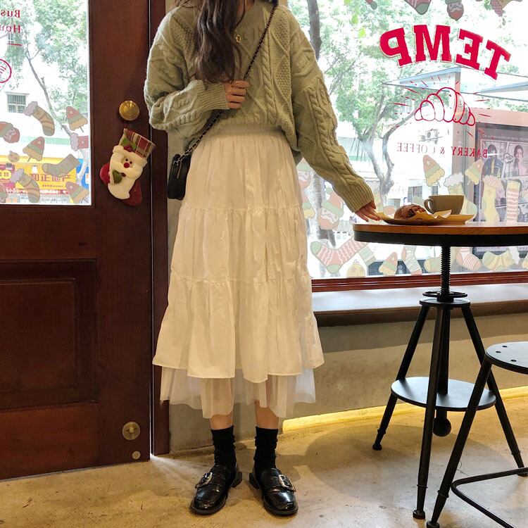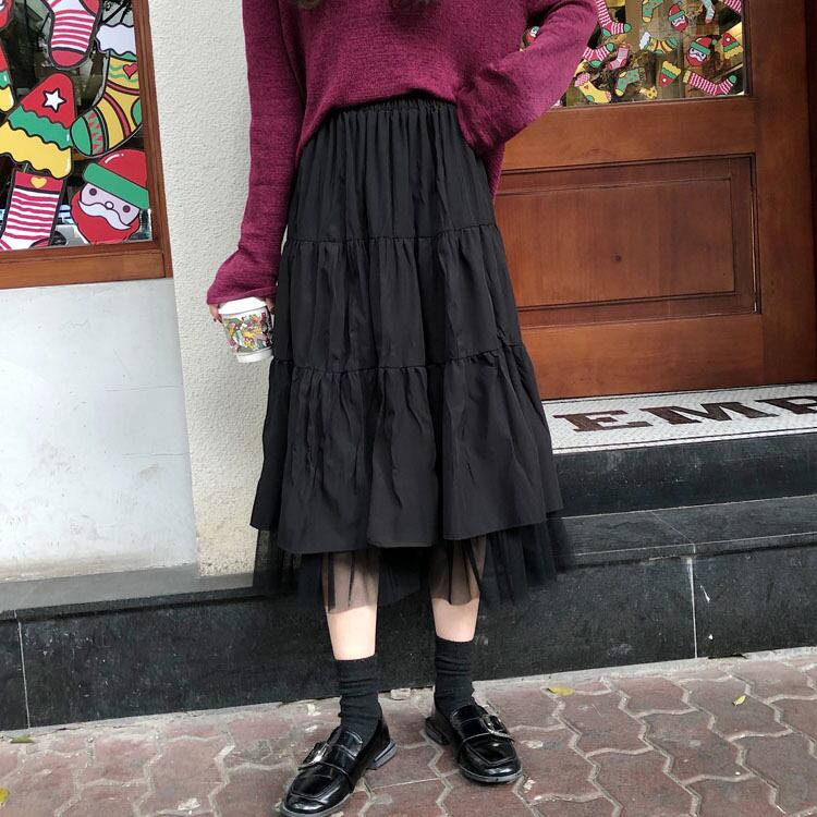 全2色 大きいサイズ 小さいサイズ レディース ティアード チュール スカート ミディ丈 メッシュ ハイウエスト ウエストゴム Aライン 無地 ナチュラル シンプル カジュアル フェミニン 春 秋 キレナチュ