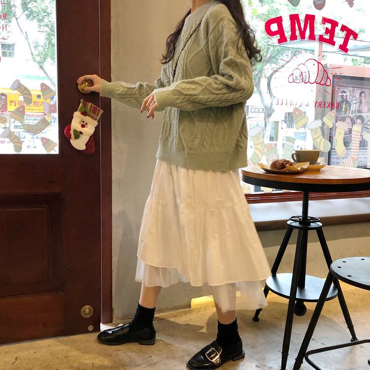 裾からチラッと見えるチュールが大人可愛い、ティアードスカート。