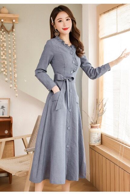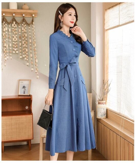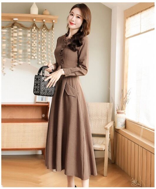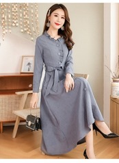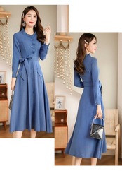 首元のフリルが可愛いAラインのワンピースはママドレス