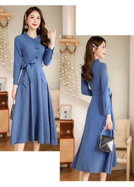 《入荷待ち》大きいサイズ 長袖ワンピース フリル Aライン ワンピース 入学式 ママドレス 卒園式 入園式 セレモニードレス カジュアル カジュドレ かわ大