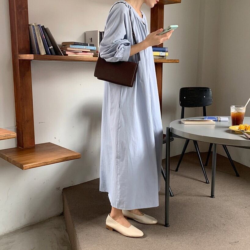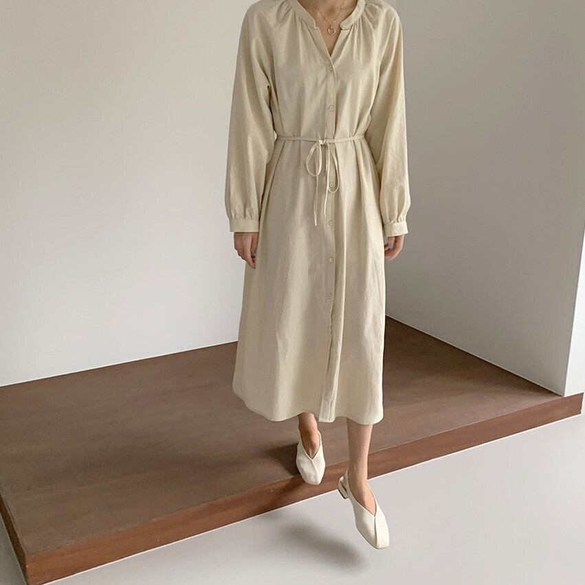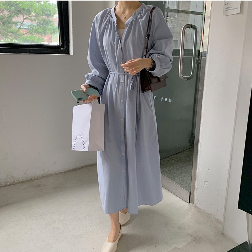 サラッと着られてオシャレにキマる、バンドカラーワンピース。